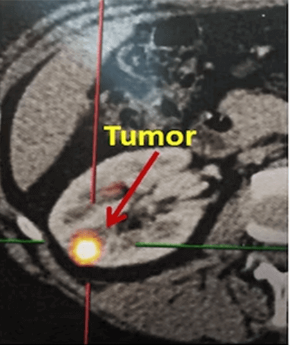In our patient with right kidney cancer, microwave ablation was performed and the tumor was completely destroyed. In small (<2,5cm) renal cancers, radiofrequency or microwave ablation may also be an option.